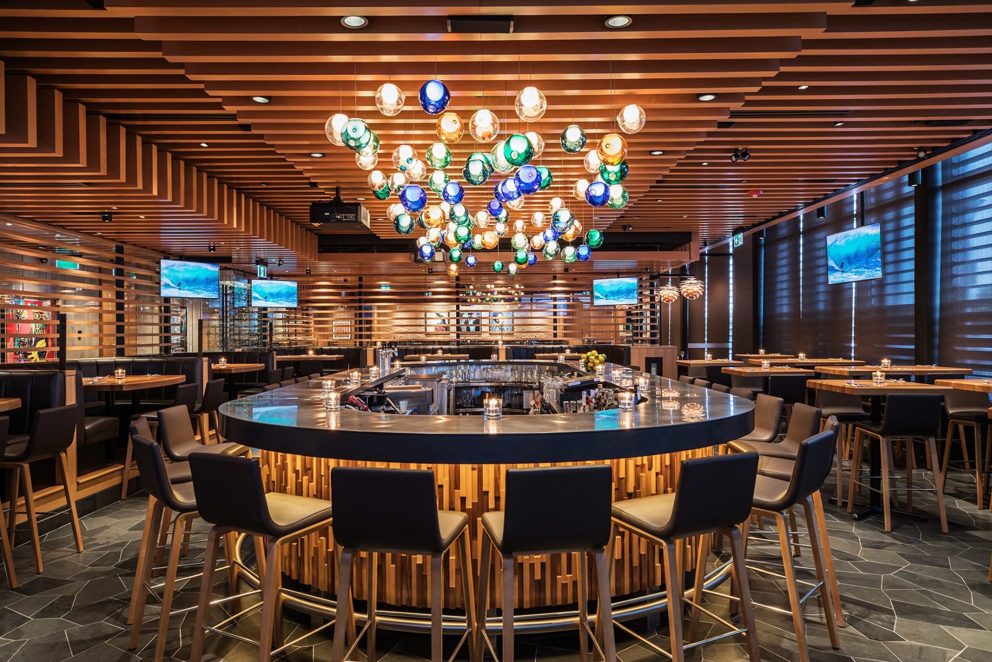 The rob feenie dining room and lounge, kate's bar, and the deck (our rooftop patio).
